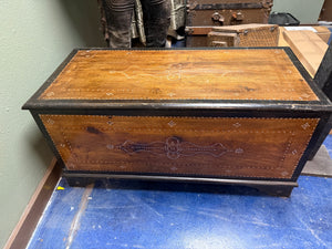 Here be a very unique chest from Malaysian, purchased from an actual Tallship many years ago. Contains ornate mother of pearl inlay.